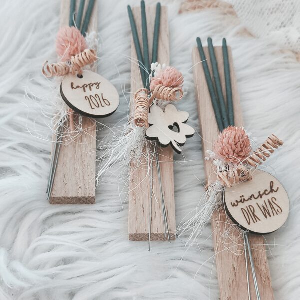 Holz Wimpel mit Gravur und Juteschnur als Aufhänger