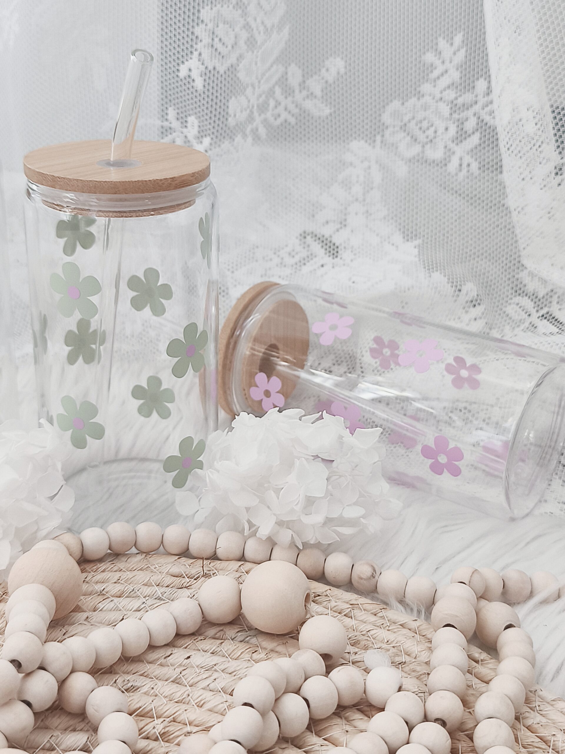 Verleihe deinem Getränk mit diesem stilvollen Strohhalmglas einen Hauch von Charme! Das Glas ist mit Blümchen aus hochwertiger Vinylfolie verziert, die in sanften Farben auf das Glas aufgebracht sind. Mit deiner Wunschaufschrift eignet es sich als individuelles Geschenk.