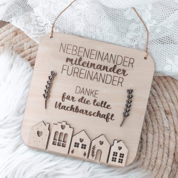 Sonnenfänger mit Holzperlen an Lederband und Holzplatte mit Gravur