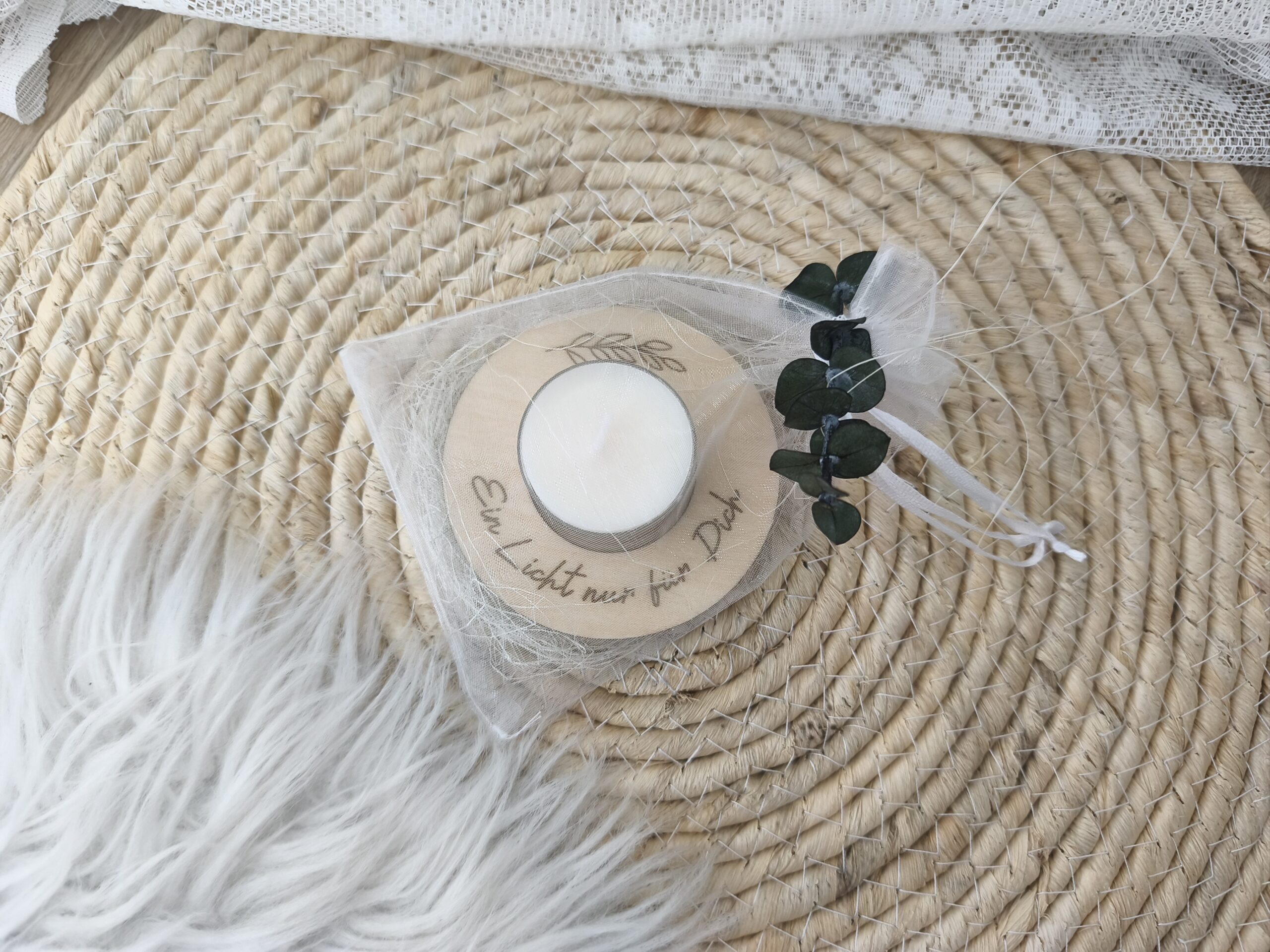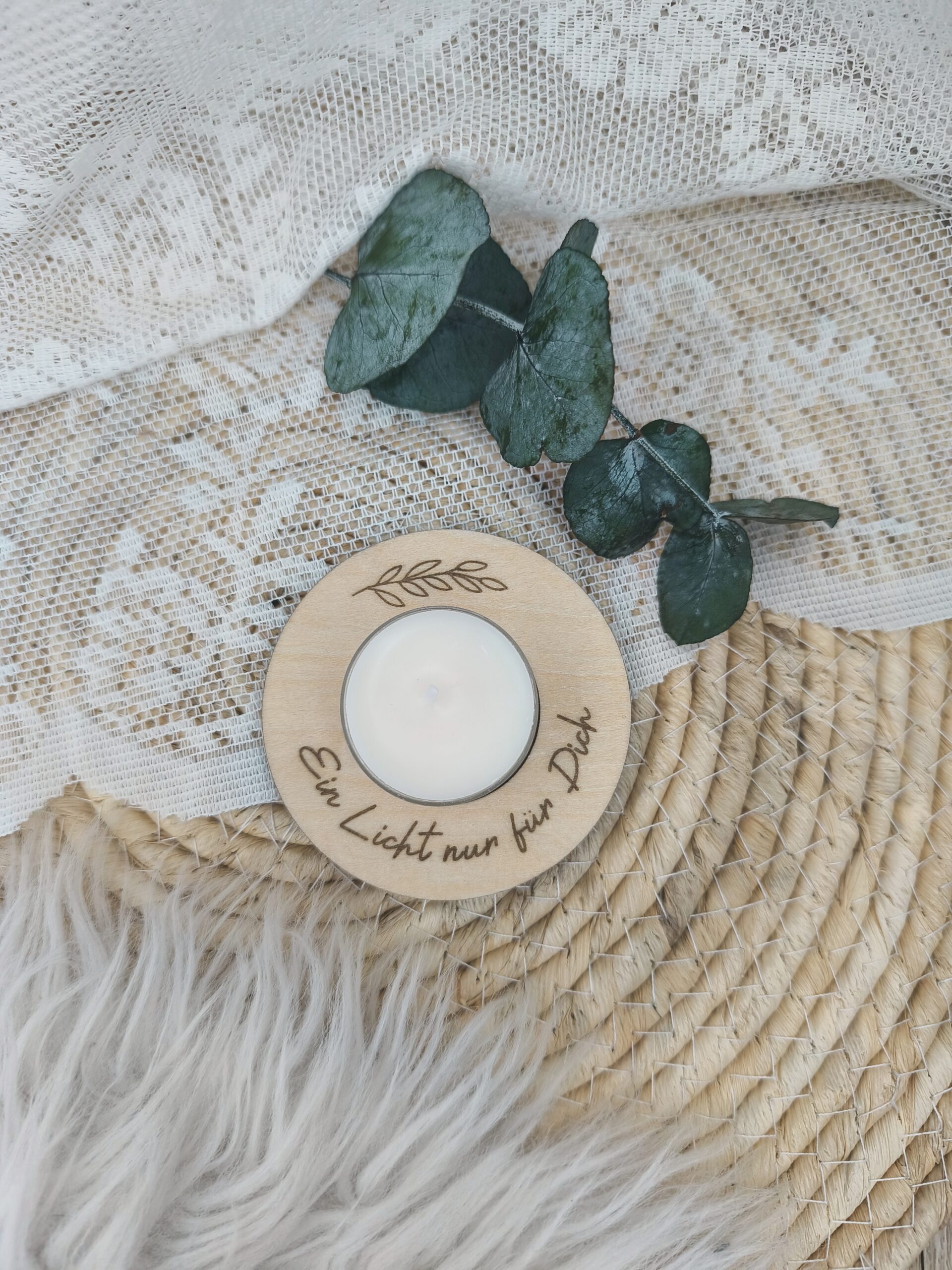 Sicherheitshinweise für Verbraucher – Teelichthalter aus Holz mit Gravur