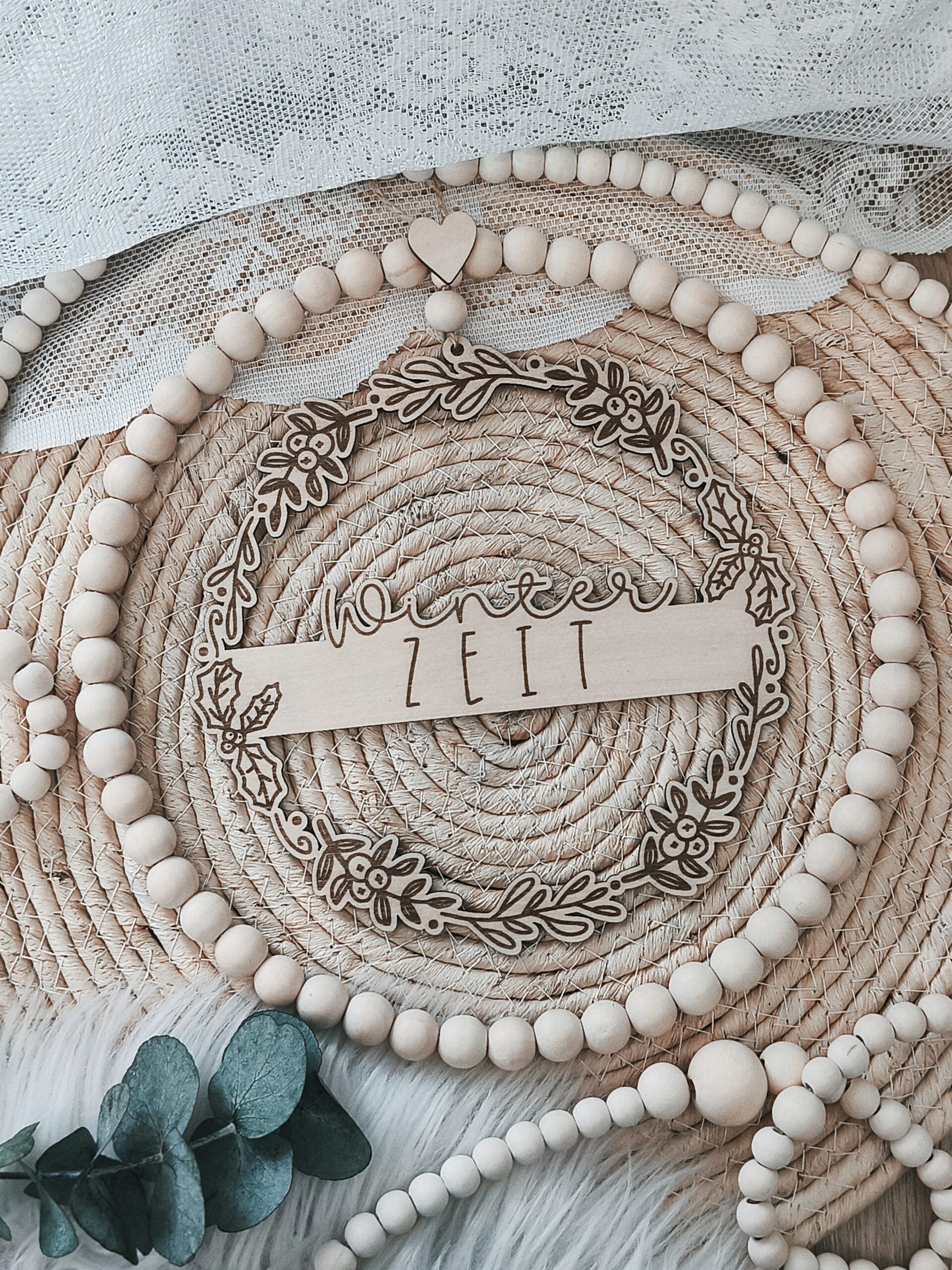 - Holz und Perlen: Holz und Perlen können bei unsachgemäßer Handhabung brechen oder splittern. Seien Sie vorsichtig, wenn Sie den Kranz anheben oder bewegen.